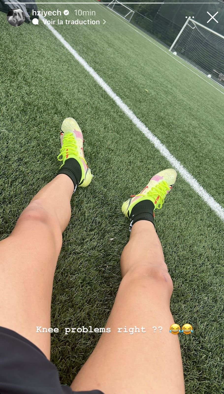 ونشر حكيم زياش”سطوري” لركبتيه أثناء خوضه حصة تدريبية معلقا عليها قائلا “مشاكل في الركبة صحيح؟????????”.