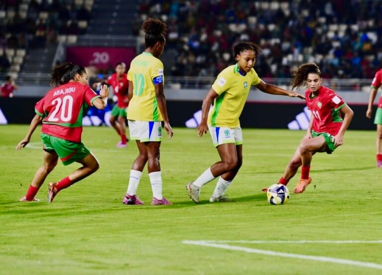 ‎افتتح المنتخب الوطني النسوي لأقل من 17 سنة مشاركته في نهائيات كأس العالم ، بالهزيمة أمام نظيره البرازيلي بثلاثية نظيفة ، في المباراة التي جمعت بينهما مساء اليوم بالملعب الأولمبي بالرباط ، برسم الجولة الأولى لمنافسات المجموعة الأولى لنهائيات كأس العالم لأقل من 17 سنة التي يستضيفها المغرب من 17 أكتوبر إلى 8 نونبر 2025.