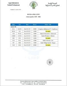كشفت العصبة الوطنية الإحترافية عن برنامج الجولة الثامنة، بمباراة مقدمة يوم الثلاثاء 04 نونبر 2025 بين الرجاء الرياضي والكوكب المراكشي، والتي ستجرى على أرضية المركب الرياضي محمد الخامس بمدينة الدار البيضاء بداية من الساعة الثامنة مساء، فيما تتواصل باقي مباريات هذه الجولة أيام السبت والأحد 08,09 نونبر 2025.، منها مباراة القمة بين فريقي الجيش الملكي والمغرب الفاسي .