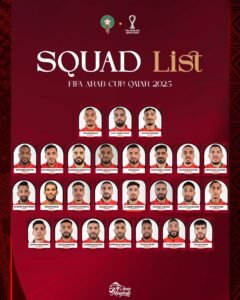 عقد مدرب المنتخب الوطني المغربي المحلي ، طارق السكتيوي،  عصر اليوم ،ندوة صحفية أعلن خلالها من خلالها عن اللائحة الرسمية للاعبين الذين وجّهت إليهم الدعوة لهم الدعوة للمشاركة في نهائيات كأس العرب لكرة القدم ،التي ستقام بقطر خلال الفترة الممتدة من 1 إلى 18 دجنبر 2025.