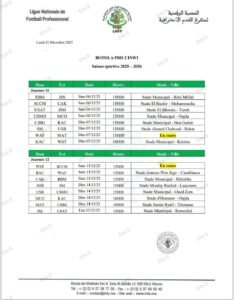 شاركها فيسبوك تويتر لينكدإن بينتيريست البريد الإلكتروني Copy Link واتساب كشفت العصبة الوطنية الإحترافية عن برنامج الجولتين السابعة والثامنة بطولة القسم الوطني الثاني ، وستجرى الجولة 11 أيام السبت والأحد 6-7 دجنبر 2025, فيما ستقام منافسات الجولة 12 ايام السبت والأحد 13 -14 دجنبر 2025