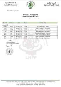 أعلنت العصبة الوطنية لكرة القدم الاحترافية، برنامج الجولة 22، من منافسات البطولة الوطنية الاحترافية، القسم الثاني.