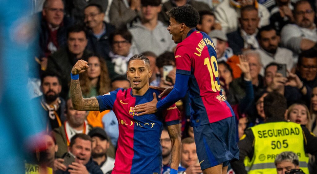 ليعود النجم الواعد لامين جمال عند الدقيقة 77 مسجلا الهدف الثالث، ثم سجل البرازيلي رافينيا الهدف الرابع عند الدقيقة 84.