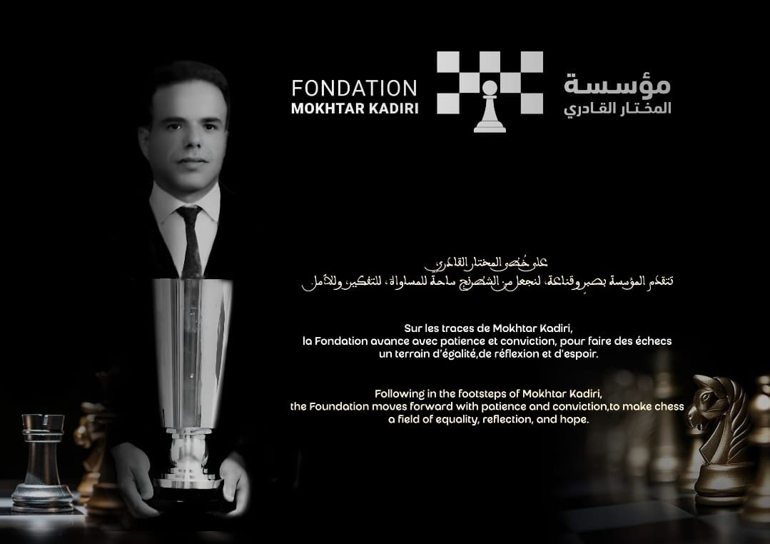 تحت إشراف الجامعة الملكية المغربية للشطرنج،تنظم مؤسسة المختار القادري بفاس،الدورة الثانية لدوري المختاري القادري،يوم السبت31ماي الجاري برياض أرابيلا بفاس(132زنقة بوعجارا).