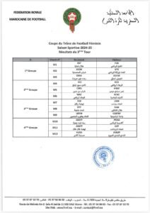 أجريت سحب قرعة الدور الثالث من مسابقة كأس العرش لكرة القدم النسوية للموسم الرياضي (2024-2025) , بمشاركة أندية القسم الوطني الأول والثاني، والفرق المؤهلة عن الدور الثاني، وقد أسفرت مباريات الدور الثالث عن مواجهات قوية لتحديد الفرق المؤهلة إلى الدور الرابع.